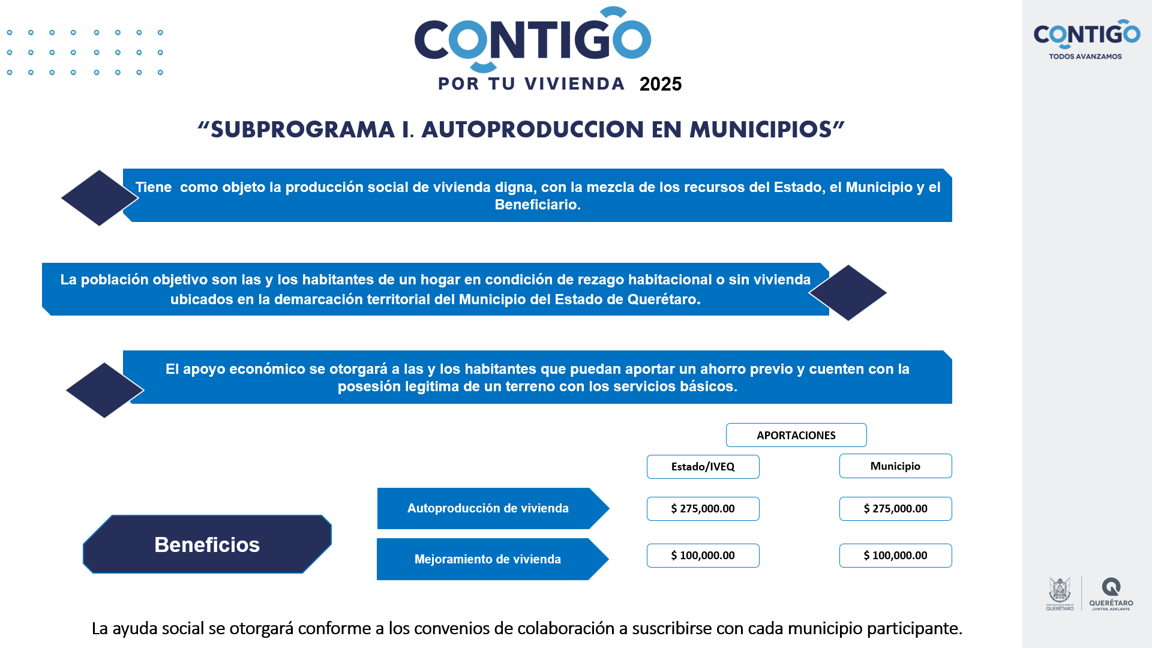Programa “Contigo por tu Vivienda 2025” Subprograma I. Autoproducción en municipios